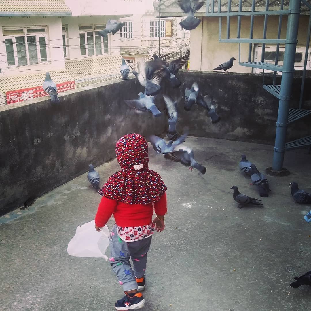 #Kritabi: Parewa chari, aau aau khau! (Pigeon bird, come, come to eat!)